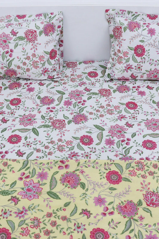 Homi Cotton Bedsheet for Super King Size Bed With Two Reversible Pillow Covers