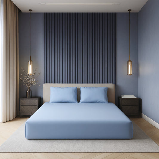 A fitted bedsheet contours around the mattress using elastic, creating a smooth tension that holds through the night. It reduces wrinkles, prevents corners from slipping and maintains a composed, hotel-like look even in busy homes.