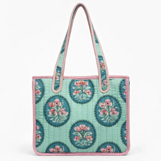 Mini Tote Bag with Zip & Bottle Holder Teal Bloom