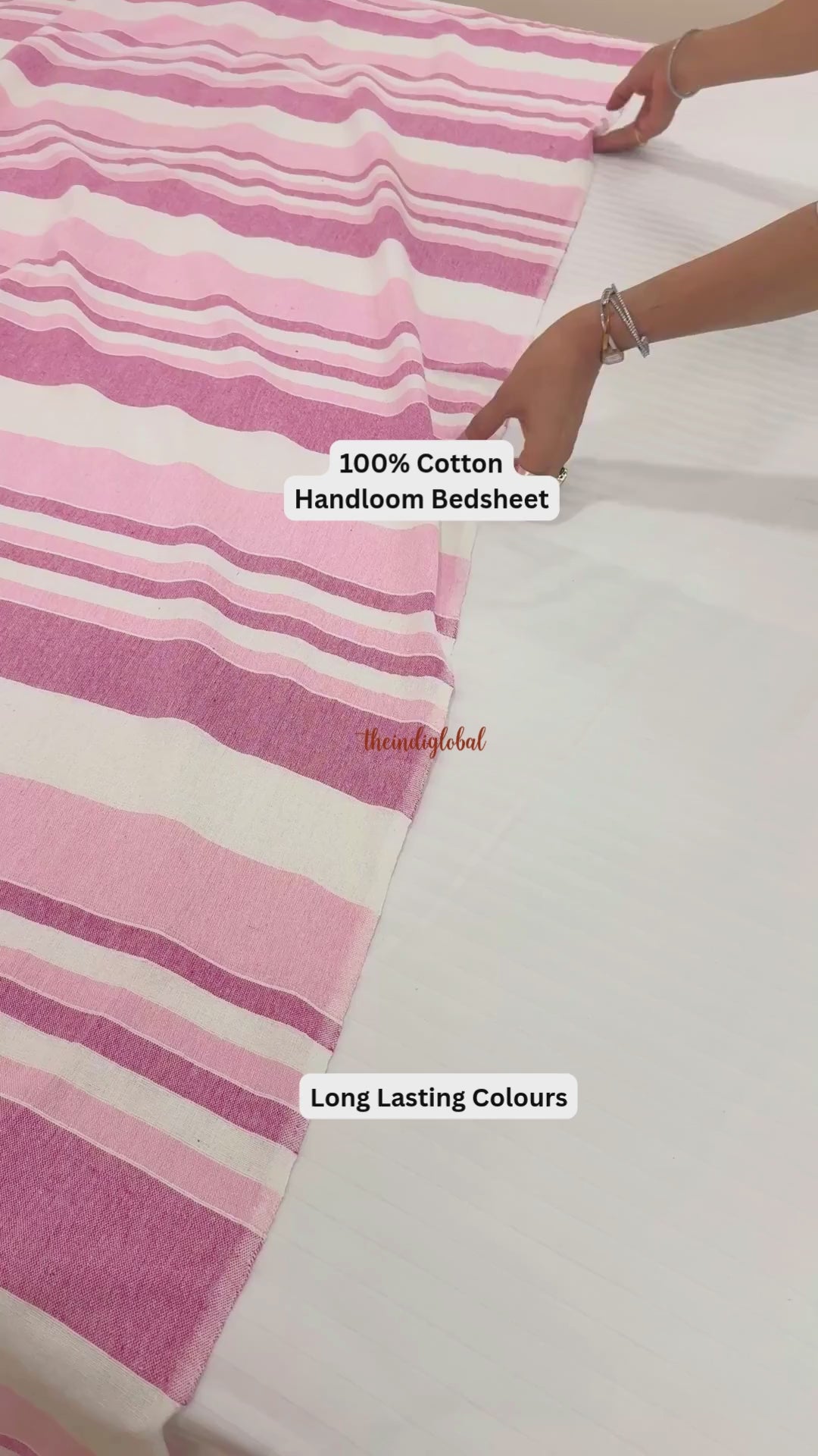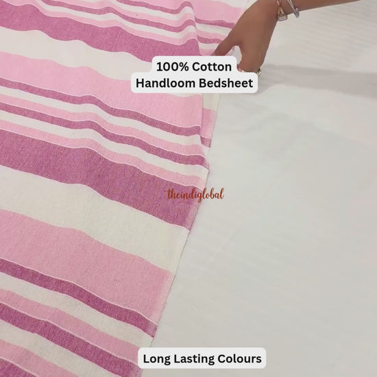 Handloom Cotton Bedsheet with Pillow Covers Pink White