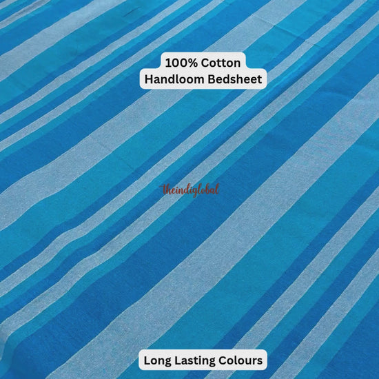 Handloom Cotton Bedsheet with Pillow Covers Sky Blue