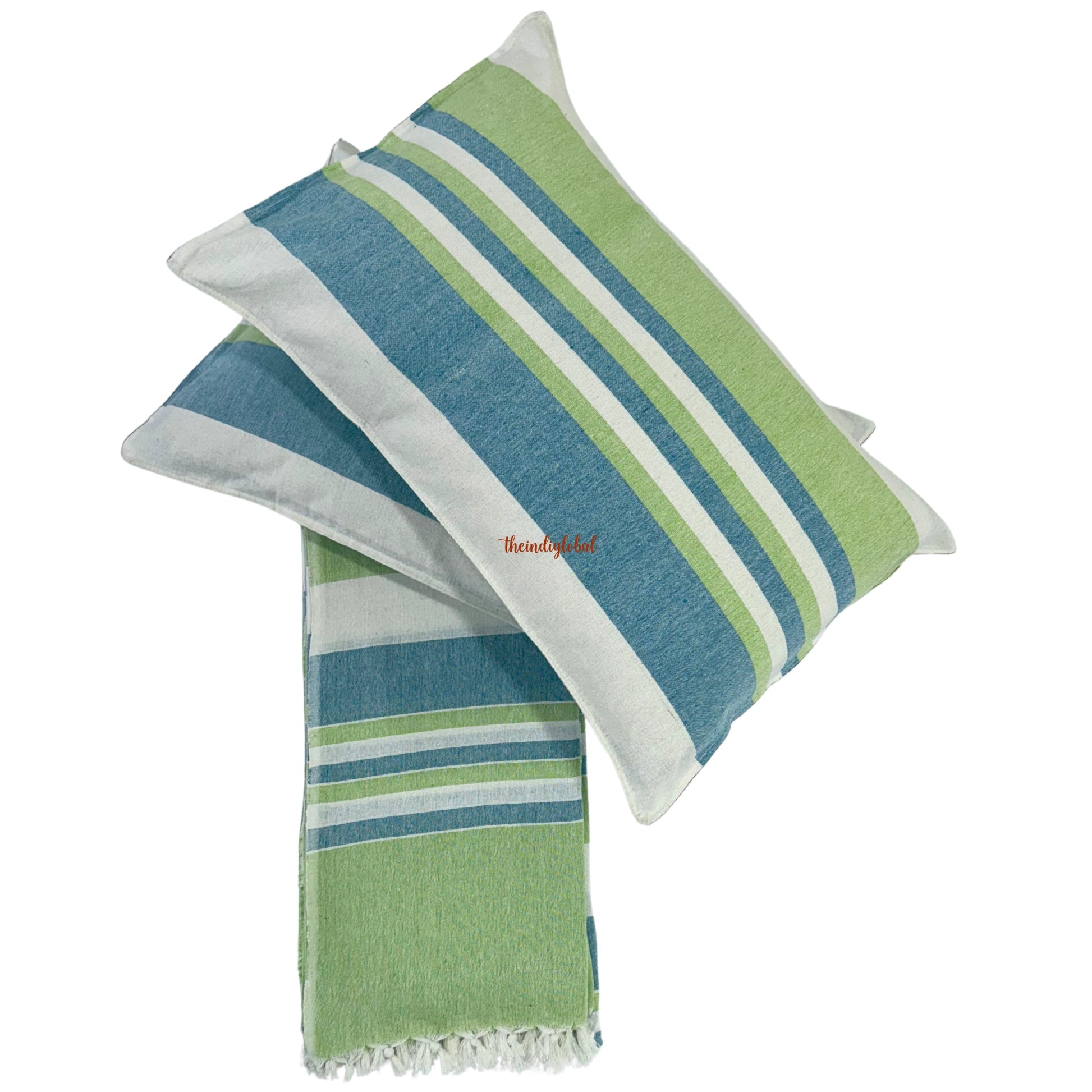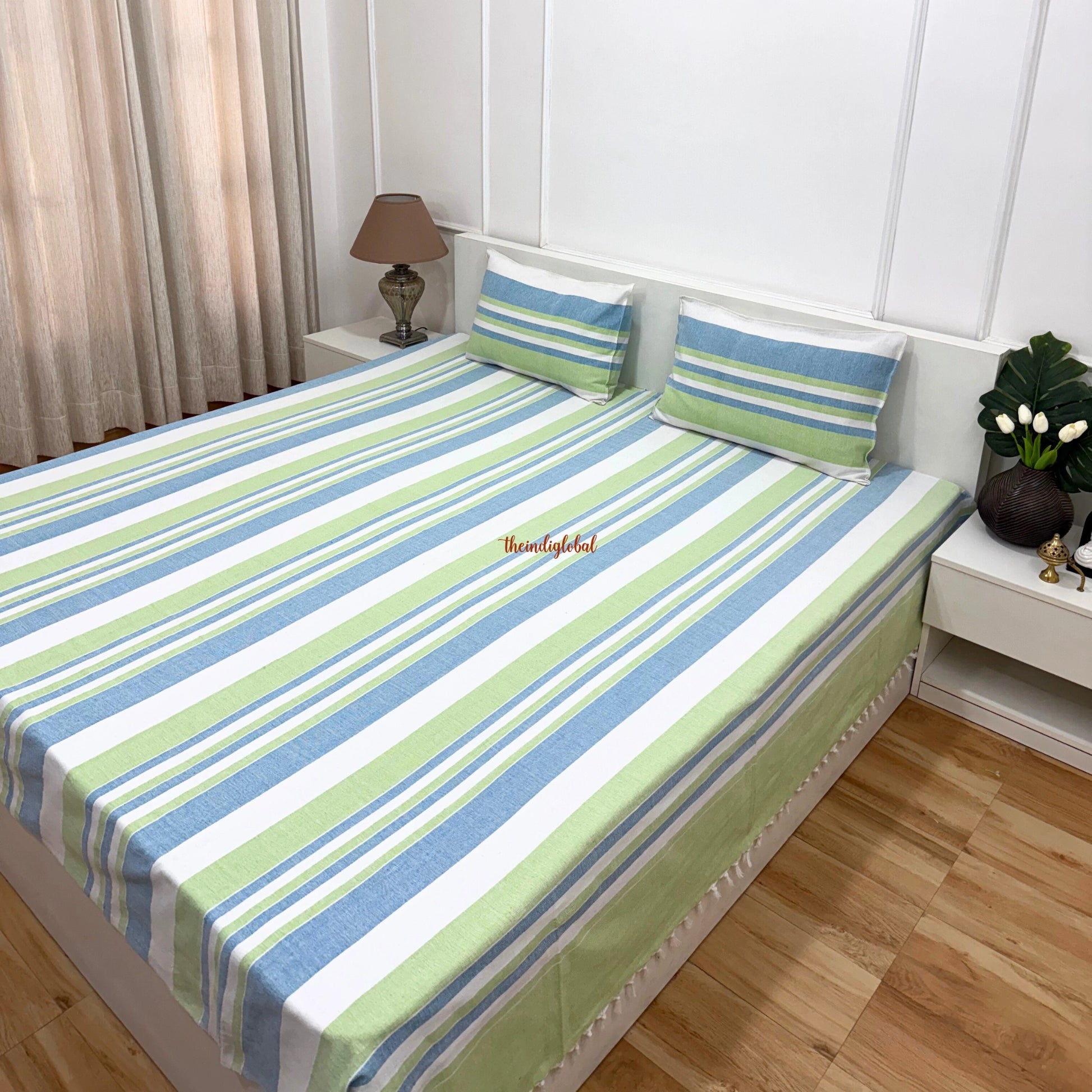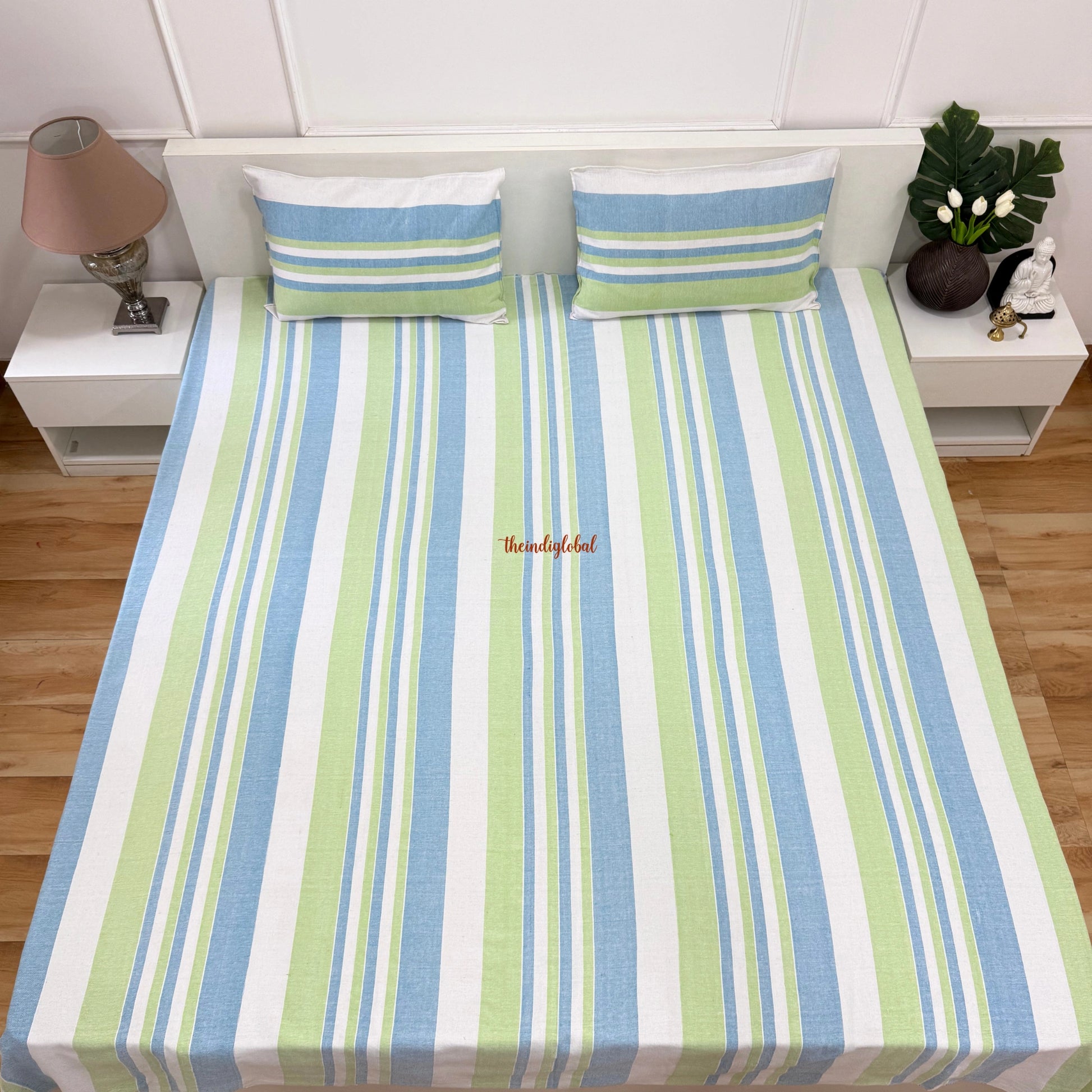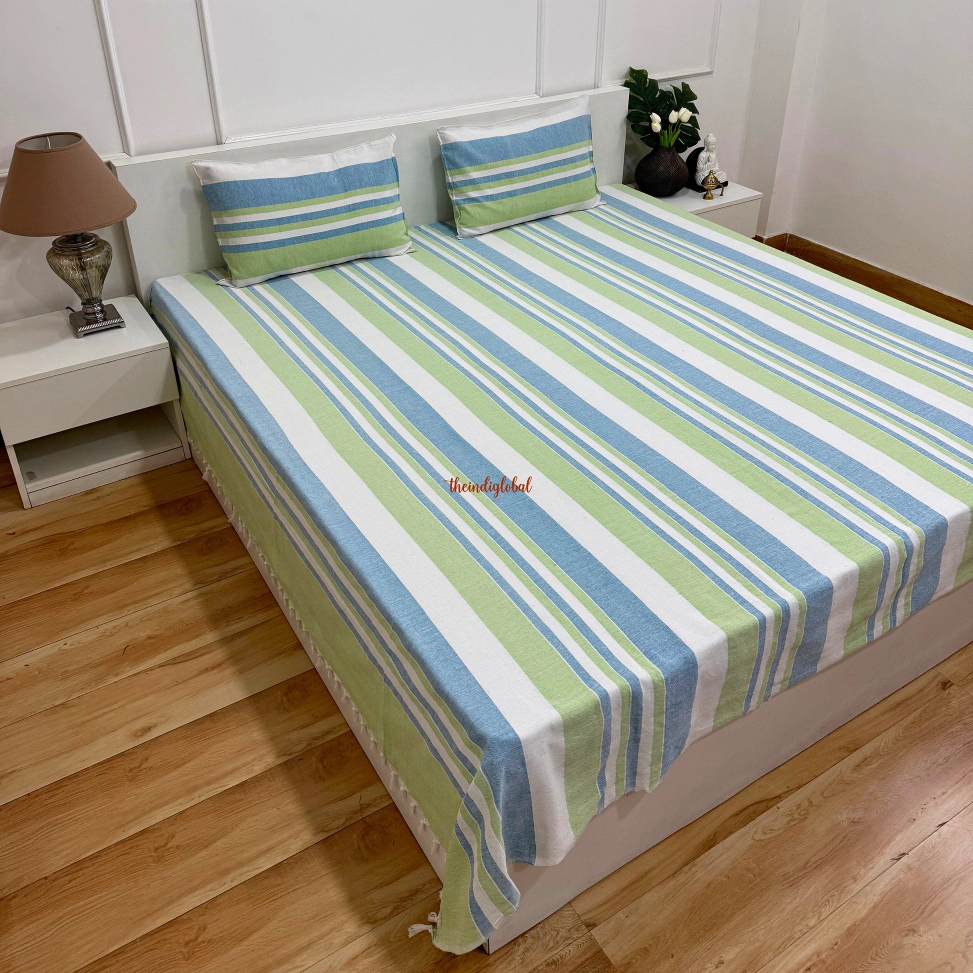 Handloom Cotton Bedsheet with Pillow Covers Blue White