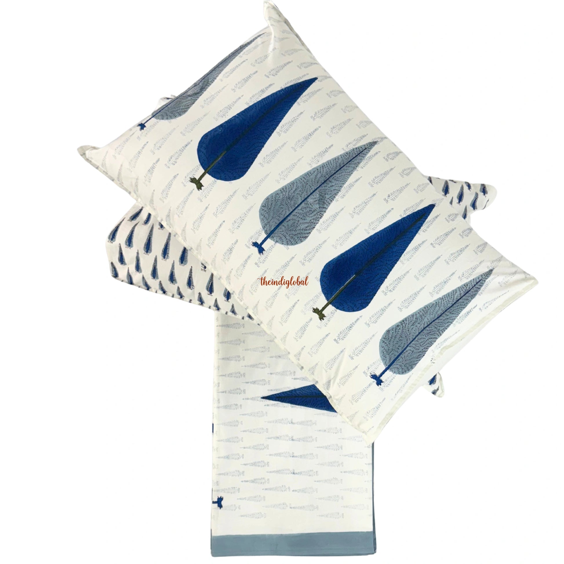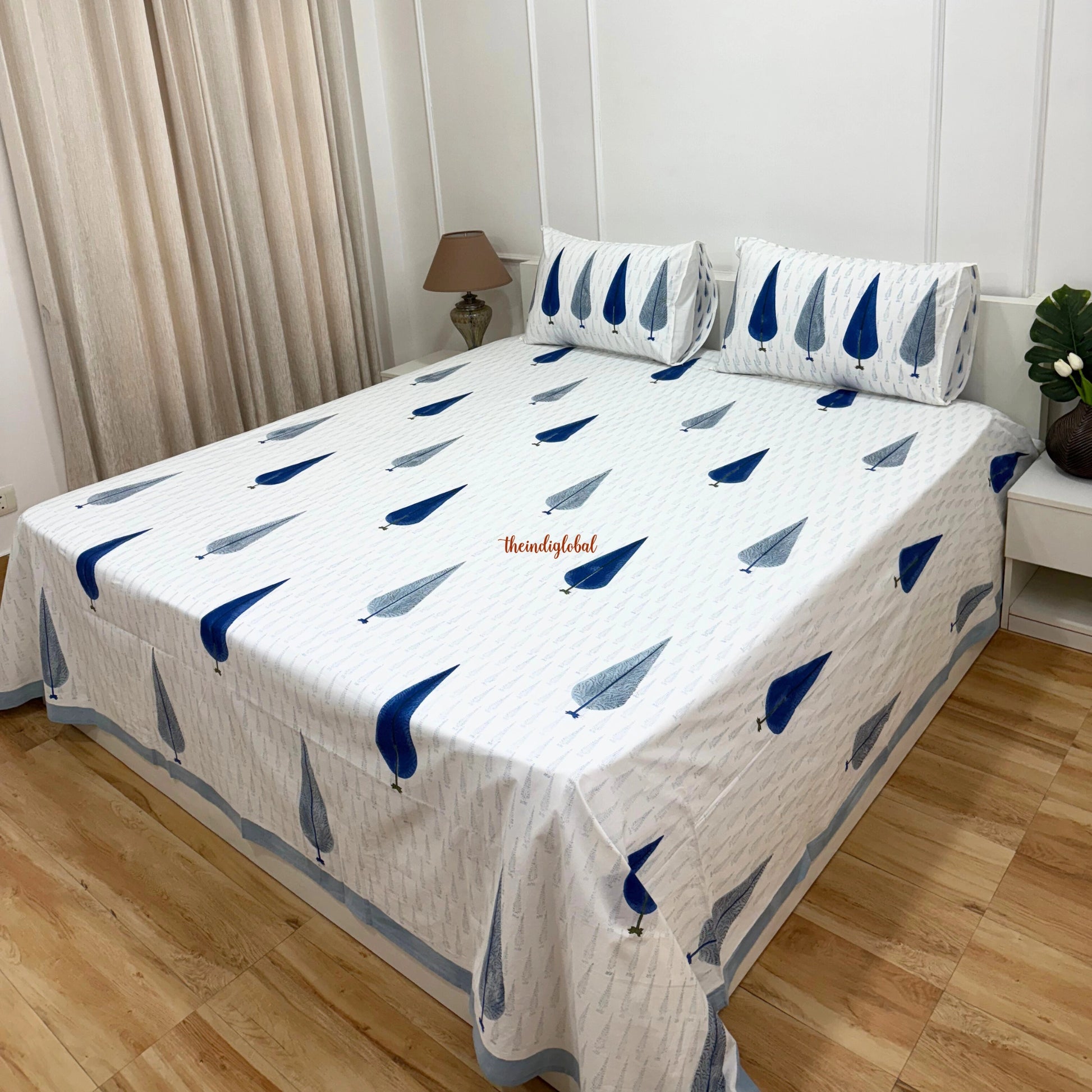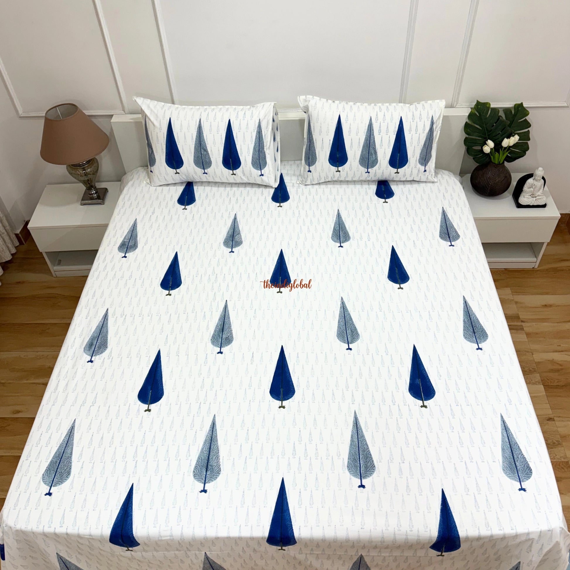 Ramya Hand Block Soft Cotton Bedsheet Blue Pankhudi