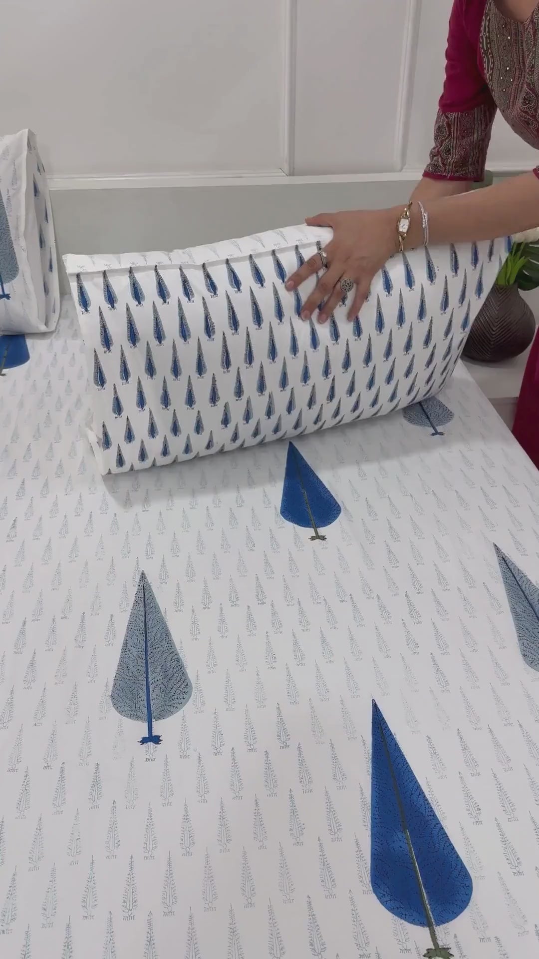 Indulge in timeless elegance with this luxurious bedsheet set, hand block printed with traditional buta motifs for a refined, heritage-inspired touch. Woven from soft, 100% cotton percale and finished with a 400 thread count, it offers a breathable, gentle feel that’s perfect for everyday sophistication. The craftsmanship shines through every precisely aligned print, balancing cultural depth with minimalist beauty.