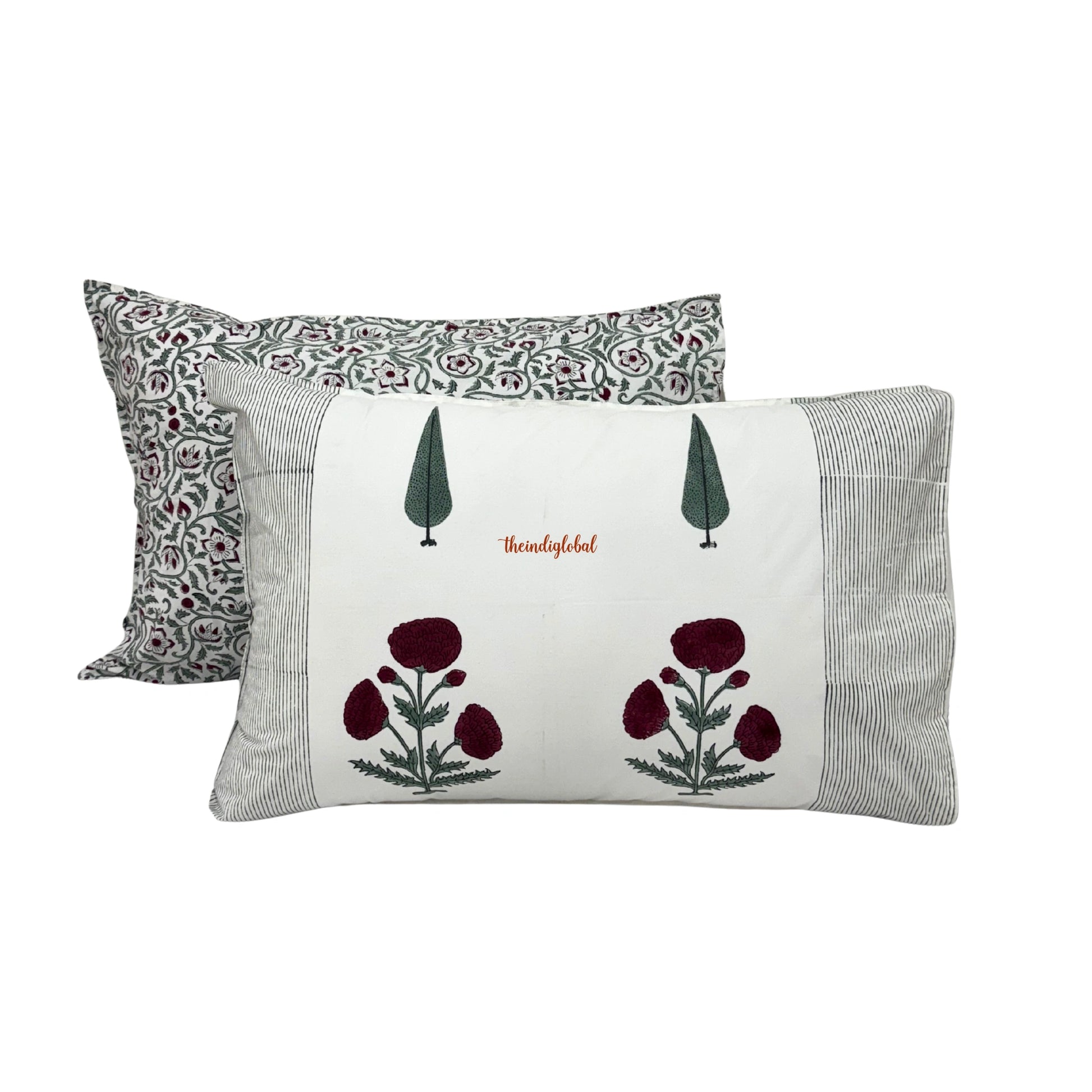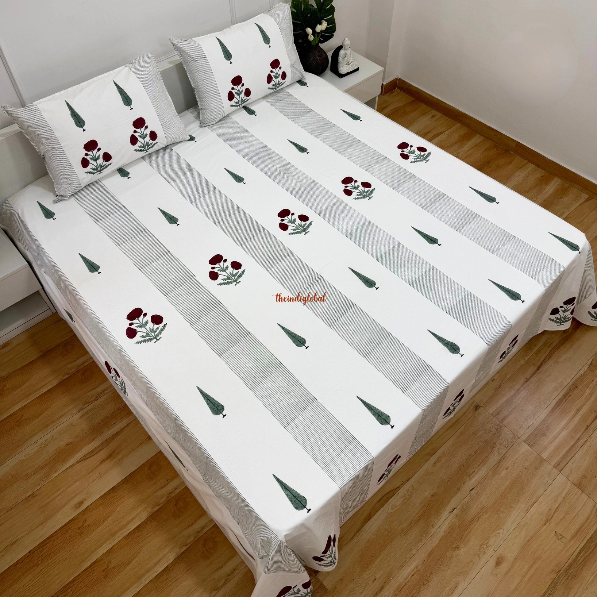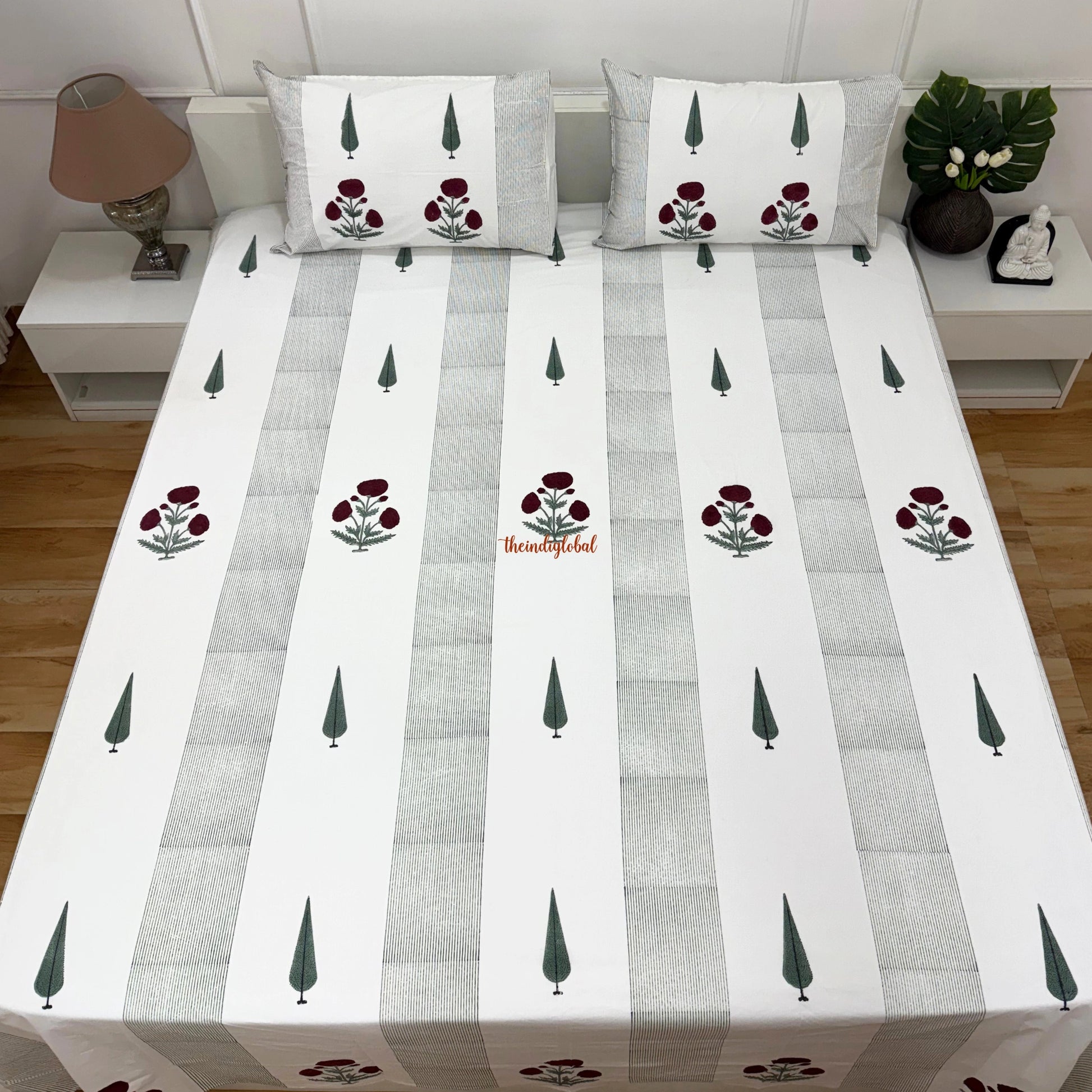 Ramya Hand Block Soft Cotton Bedsheet with 2 Pillow Covers 108*108 inches Gulab
