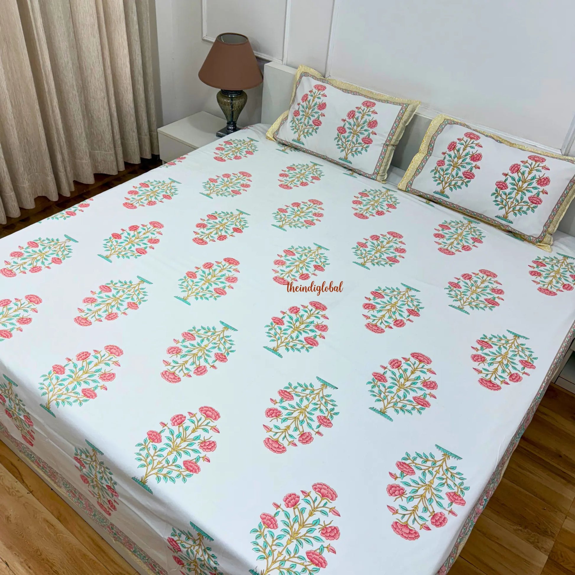 Veda Hand Block Soft Cotton Bedsheet with 2 Pillow Covers Peach