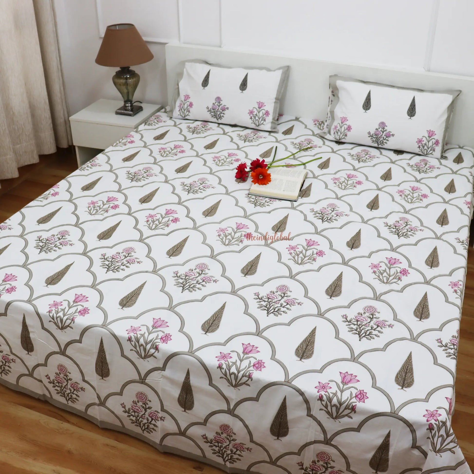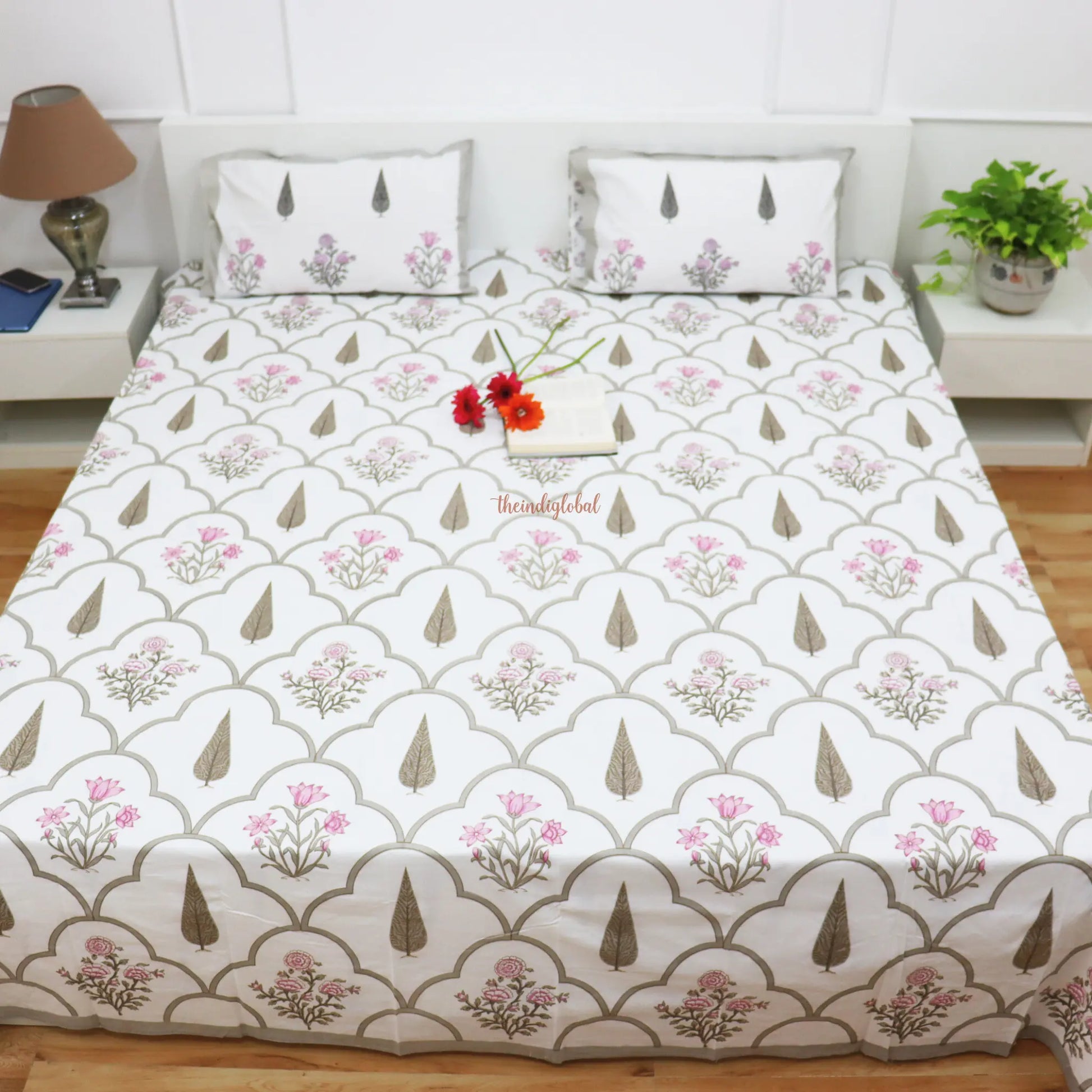 Indulge in timeless elegance with this luxurious bedsheet set, hand block printed with traditional buta motifs for a refined, heritage-inspired touch. Woven from soft, 100% cotton percale and finished with a 300 thread count, it offers a breathable, gentle feel that’s perfect for everyday sophistication. The craftsmanship shines through every precisely aligned print, balancing cultural depth with minimalist beauty.