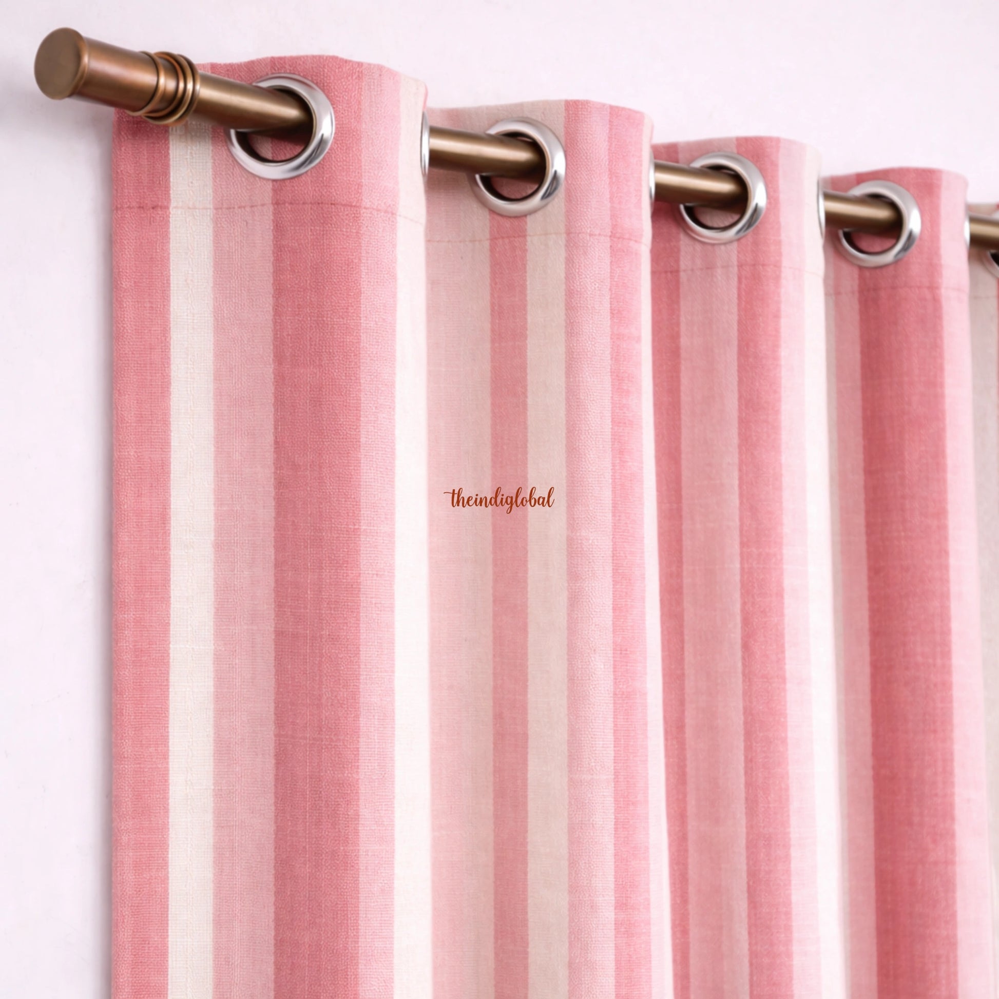Delicate but grounded in craft, this pair of Pink White cotton curtains carries a quiet sense of refinement. Authentic handloom woven from pure cotton, the fabric features a 210 TC weave and 245 GSM weight that feels breathable and still quite sturdy in daily use. Natural dyes ensure it remains chemical-free, keeping the surface soft to touch. With tidy loop hanging style for easy to handle 7.5x4 feet dimension, it becomes an effortless accent for sofas, armchairs, or bedroom styling.